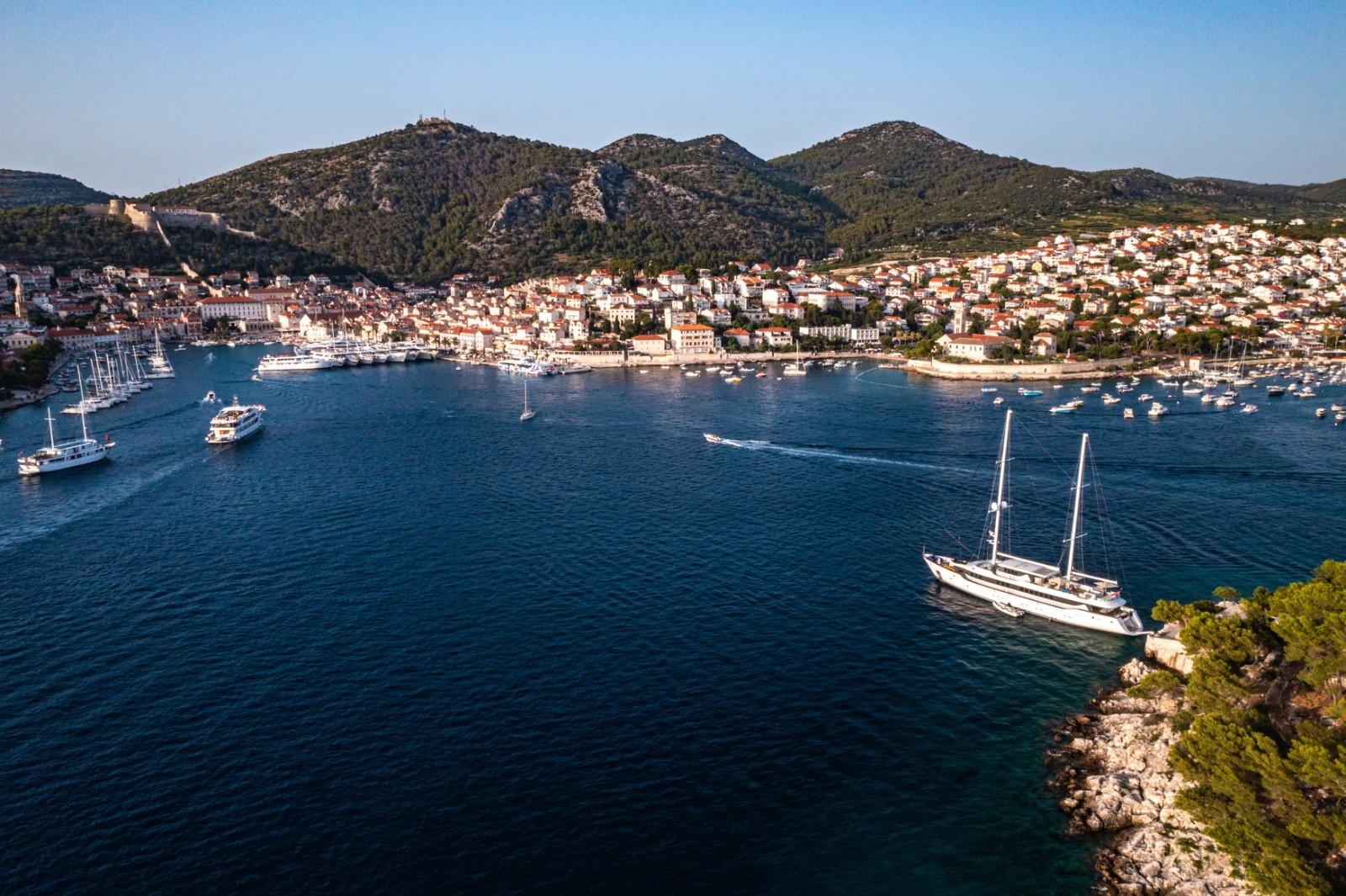 Zamislite zalazak sunca iznad mora, dok svjetla grada Hvara polako oživljavaju pred vašim očima. Otočić Galešnik, smješten tik ispred grada, pruža jedinstvenu kulisu za trenutke koje želite pamtiti zauvijek.